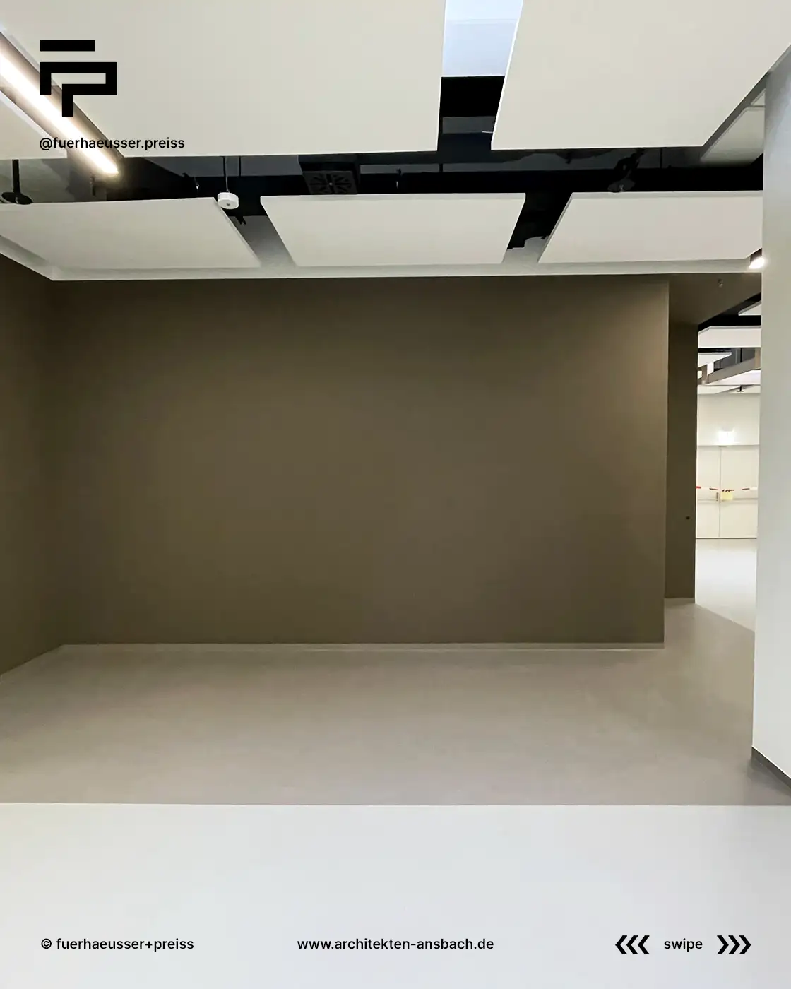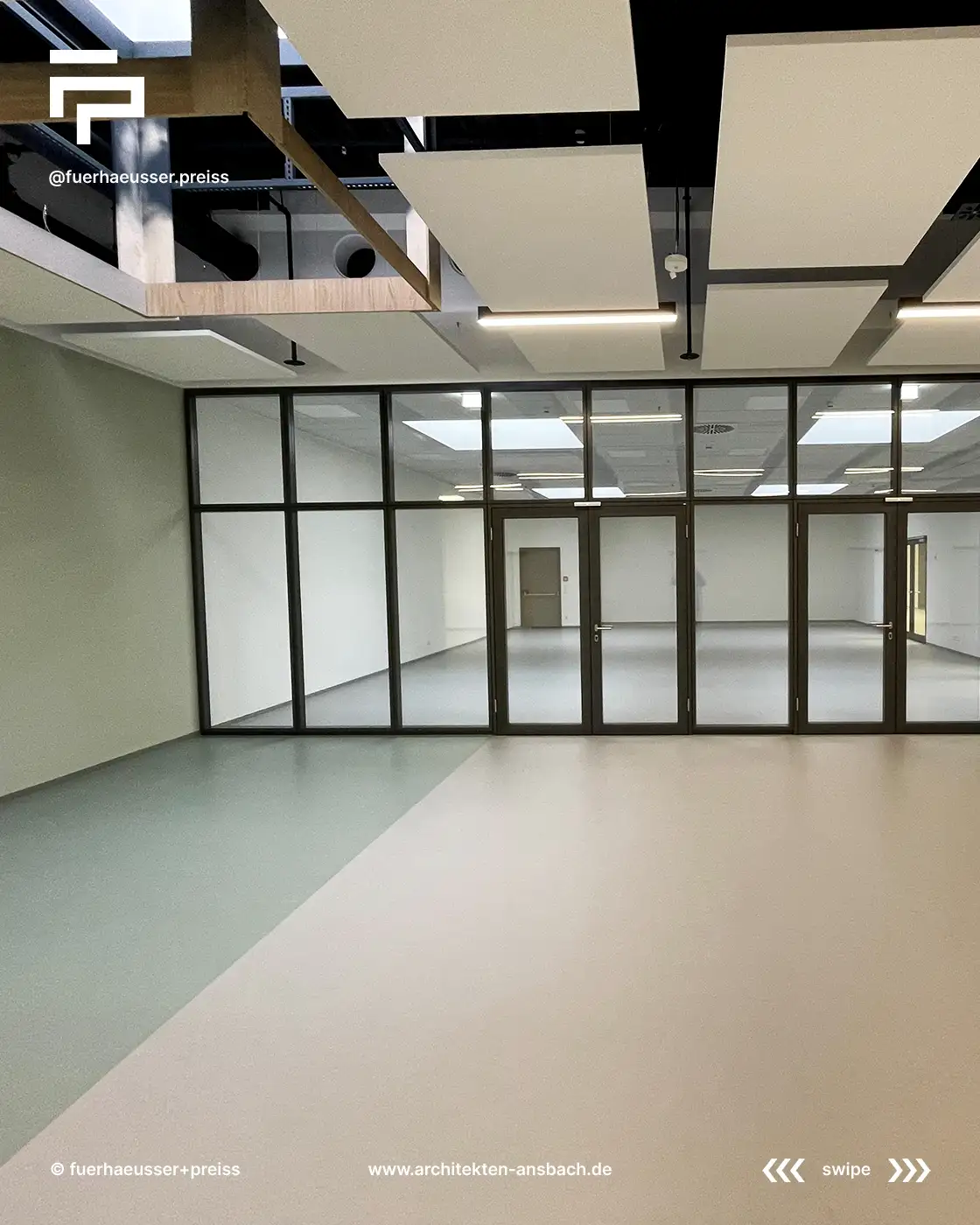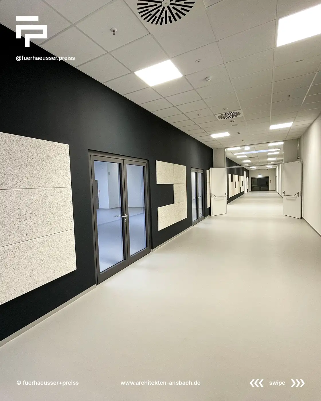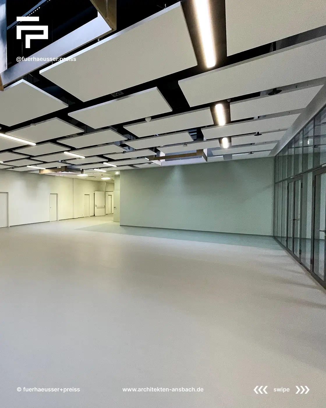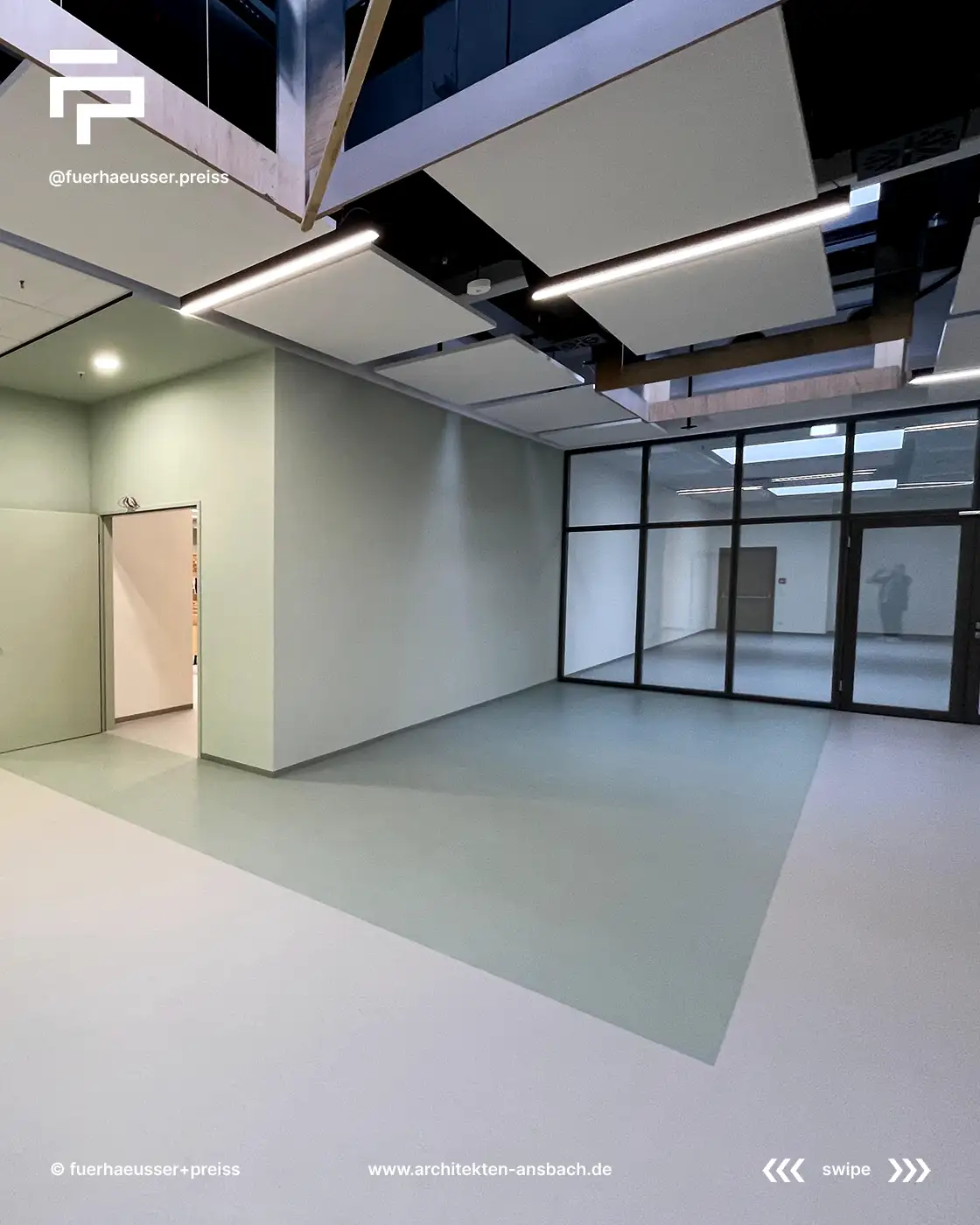 Die ehemaligen Verkaufs-, Lager- und Büroflächen im 1. OG des Brückencenters in Ansbach wurden hier zur Ausbildungsstätte für die Hochschule Ansbach umgebaut